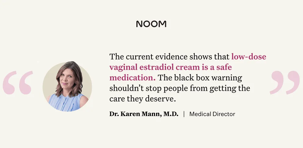 “Even though vaginal estrogen cream contains a black box warning, the current evidence shows that low-dose estradiol is a safe medication. There is debate over whether to get rid of this warning because the science over the past 20+ years continues to prove the warning is likely not needed. I want people to know that the data is on our side and the black box designation shouldn’t stop people from getting the care they deserve,” says Dr. Mann.