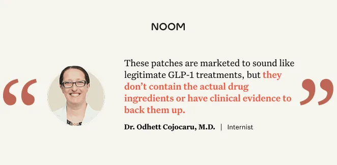 “These patches are marketed to sound like legitimate GLP-1 treatments, but they don’t contain the actual drug ingredients or have clinical evidence to back them up,” says Dr. Odhett Cojocaru, MD. “They’re essentially just common weight loss supplements in new packaging.”