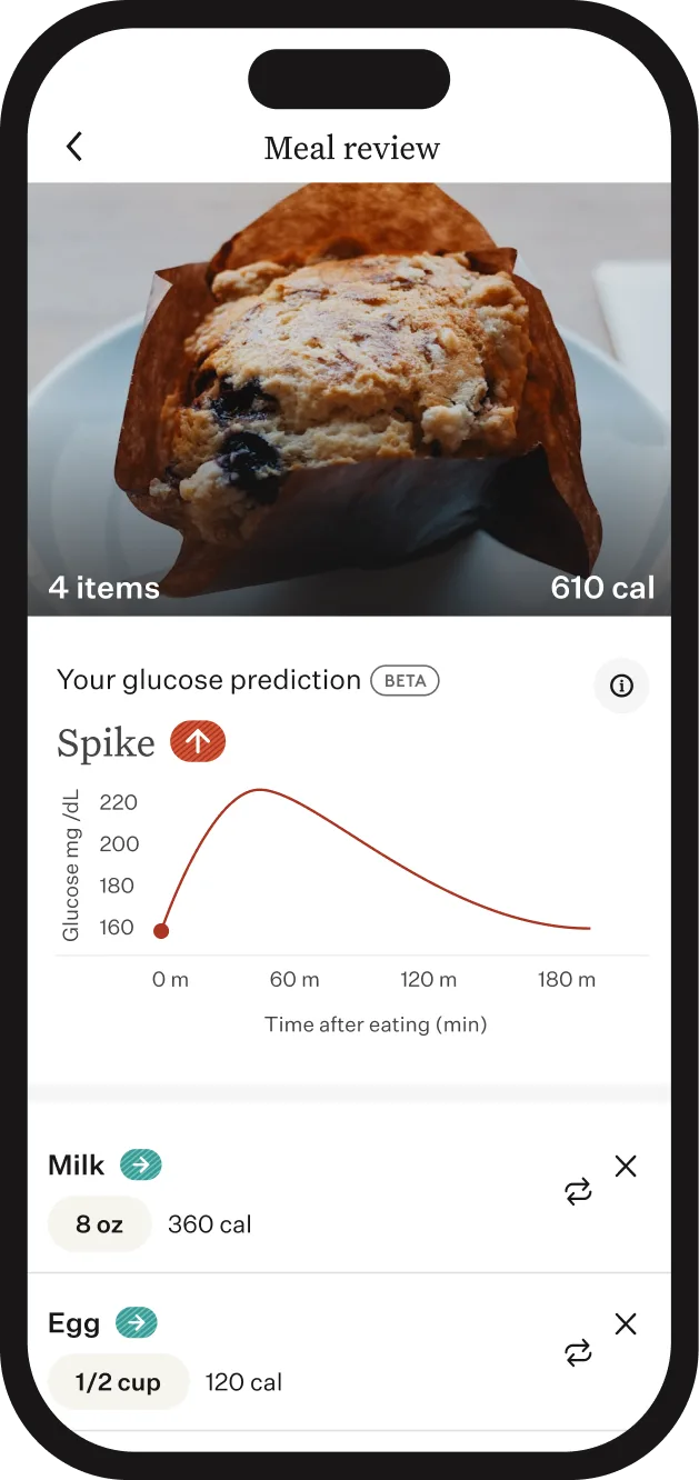 Predictive insights guide healthy choices to support blood sugar control.